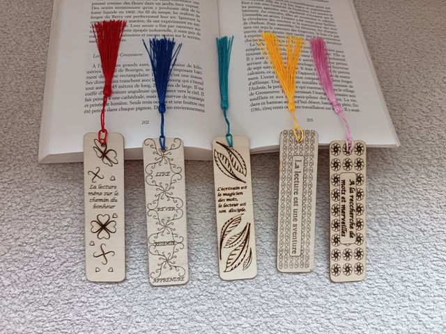 Marque-pages en bois avec des dessin originaux gravé au laser